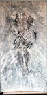 Rechts neben der Arbeit „Meditation“ hängt die Abformung (Leinen) der vom Feuer beschädigten Christusskulptur, die vor Ort entstand ( 220 cm/95 cm). Die gezeigte Abformung erinnert an das Turiner Grabtuch.